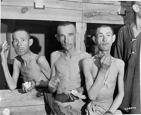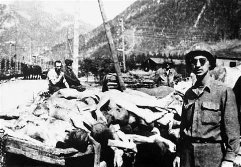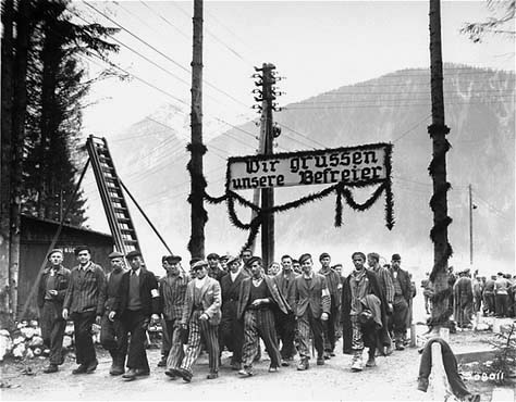 Ebensee - subcamp of Mauthausen![]() The photograph above was taken on May 6, 1945, after Ebensee, a sub-camp of the Mauthausen Concentration Camp, was liberated by soldiers in the 80th Division of the US Third Army on May 4th and 5th. The banner, written in French, reads "The French prisoners Salute the Allies." It was erected by the anti-Nazi resistance fighters who were imprisoned here after being captured and accused of doing acts of sabotage during the Nazi occupation of France. The photograph below was erected by the German prisoners. It reads "We welcome our liberators." Among the German prisoners were some who were condemned criminals. ![]() The prisoners at Ebensee worked in underground factories which manufactured Messerschmitt airplanes. German engineers and civilians also worked in these factories. The site was chosen because there were natural caves which could be enlarged into tunnels so that the munitions factories could be protected from Allied bombing raids. ![]() According to Martin Gilbert, the author of a book entitled "Holocaust," Ebensee was an "end destination" for Jewish prisoners who were evacuated from camps farther east as the Soviet Army advanced toward Germany. In the last months of the war, the Ebensee camp was seriously over-crowded with these exhausted prisoners, many of whom had just arrived in the weeks prior to the liberation. Gilbert wrote the following regarding the evacuations and the death marches: Jews who had already survived the 'selections' in Birkenau, and work as slave laborers in factories, had now to survive the death marches. Throughout February and March [1945] columns of men, and crowded cattle trucks, converged on the long-existing concentration camps, now given a new task. These camps had been transformed into holding camps for the remnant of a destroyed people, men and women whose labor was still of some last-minute utility for a dying Reich, or whose emaciated bodies were to be left to languish in agony in one final camp. According to Gilbert's book, a train loaded with 2,059 Jews arrived at Ebensee on March 3, 1945. They had survived the death camp at Auschwitz-Birkenau and had first been sent to the Gross Rosen concentration camp, then on to Ebensee. Forty-nine of the Jewish prisoners died on the train, and on their first day in the camp, 182 died during the disinfection procedure. New arrivals had to be disinfected to kill the body lice which spreads typhus. There was a typhus epidemic in Mauthausen and the sub-camps and, according to Martin Gilbert, 30,000 prisoners died in these camps in the last four months of the war. ![]() ![]() ![]() In the photograph of three Ebensee survivors above, note the shirt of another man in the background on the right. In place of buttons, his shirt is held together with ties. This shows how much the Nazi concentration camps had deteriorated as the war progressed. During the early days of the camps, strict discipline was enforced and prisoners were punished for having a button missing. By the time the American liberators arrived, the prisoners were lucky to even have a shirt on their backs. According to Martin Gilbert, the last death marches of the war began on May 1, 1945 as the American Army approached; prisoners from the main camp at Mauthausen and the sub-camps at Gusen and St. Valentin were marched to Gunskirchen and Ebensee. Hundreds of them died from exhaustion, or were shot because they couldn't keep up, or as they attempted to escape. When American troops in the 80th Infantry Division arrived on May 4, 1945, there were around 60,000 prisoners from 25 different countries at Ebensee. ![]() In the photograph above, the prisoners all have shaved heads, a procedure which was used in all the Nazi concentration camps in an effort to control the lice which spreads typhus. Their heads were shaved first on the sides and the next time on the top. These prisoners have a regrowth of hair on the top, but have recently been shaved on the sides of their heads. The privileged Kapos were allowed to have a full growth of hair or a beard if they were bald. ContinueHomeThis page was last updated on December 5, 2008 |