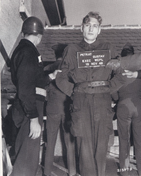 Gustave Petrat appears calm just before his execution Gustav Petrat was a 19-year-old dog handler in the infamous Mauthausen concentration camp. He was assigned to the camp as a guard with a leashed dog, after being wounded in battle as a soldier in the Waffen-SS. He was brought before the American Military Tribunal at Dachau in a subsidiary case of the Mauthausen trial, and was charged with being a war criminal because he allegedly beat and killed prisoners in the camp, a charge which he denied. He was convicted and hanged in Novemeber 1948 when he was just short of his 24th birthday. All of the accused in the Dachau proceedings were first interrogated in order to obtain confessions from them. Petrat accused the American interrogators of beating him to get him to sign a confession.