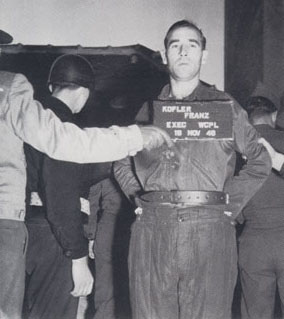 Dachau TrialsUS vs. Franz Kofler, et al![]() A subsidiary case in the US Military Tribunal proceedings against the staff members of the Mauthausen concentration camp was known as "The United States versus Franz Kofler, et al." Kofler, shown in the photo above, was from Austria. There were 8 accused men in this case, including Gustav Petrat who was an ethnic German from Lithuania; Petrat had become a German citizen in 1942. The case began on 6 August 1947 and ended on 21 August 1947. All of the following information is from the book entitled "Innocent at Dachau," written by Joseph Halow, a court reporter who was assigned to take down the testimony in the Franz Kofler subsidary case. Gustave Petrat was convicted mainly on the testimony of a beautiful Polish woman named Danuta Drbuszenska, who was 19 years old at the time that she claimed that Petrat beat her in the camp. Petrat was around the same age. According to the court reporter, Joseph Halow, Petrat blushed a deep red and wore a sheepish grin on his face as Danuta testified. Halow wrote that he "guessed immediately that there had been not cruelty, but deep intimacy between the two." Halow also said that Danuta lived in the barrack which was a brothel for the SS men and some of the prisoners. Major Oates, the defense lawyer for Petrat, asked Danuta on the witness stand if she had had a love affair with Petrat, but she dodged the question and said, "I would kill him if I could." The defense then asked Danuta if she had been trying to kill Petrat at the time that he struck her with an object. She answered that she had been swearing at Petrat at the time because she didn't want to have anything to do with him. Another witness against Petrat was a 17-year-old Jew named Andor Fried, who accused Petrat of killing stragglers on a march from Mauthausen to the sub-camp of Gunskirchen. Fried claimed to have seen these killings from a distance of one and a half city blocks. Witnesses for the defense said that Petrat would not have been assigned to accompany a march because he could not ride a motorcycle since he had been woulded at the front before he was assigned to Mauthausen. Petrat was a dog handler who was assigned to guard prisoners outside the Mauthausen camp. Witnesses accused Petrat of allowing his dog to tear peices of flesh out of the inmates. Defense witnesses said that Petrat's dog was not viscious and would not attack. Petrat made a name for himself when he wrote a detailed account of how he was tortured by the American interrogators. There were many similar accusations against the Jewish interrogators by the other Nazi war criminals who were tried at Dachau. This subsidiary case was tried after the main trial of the Mauthausen staff members, which was known as "The United States versus Hans Altfuldisch, et al." Besides Kofler and Petrat, the accused in the subsidiary case included four native Germans: Hermann Franz Buetgen, Quirin Flaucher, Arno Albert Reuter and Emil Thielmann. Also on trial were Michael Heller and Stefan Lennert, who were both born in Romania, but were ethnic Germans serving in the SS. In the parent case, the court had declared "Special Findings" which said that there was enough evidence to convict any staff member in any of the following subsidairy cases without further proof. The court had ruled "...that the mass atrocity operation was criminal in nature and that the participants therein, acting in pursuance of a common design, subjected persons to killings, beatings, torures, etc., and that [the court] was warranted in inferring that those shown to have participated knew of the criminal nature thereof." What this meant was that anyone in the camp, whether Kapo or SS guard, knew of the atrocities in the camp and was therefore guilty of participating in a "common design" by virtue of that knowledge. All that was necessary for the prosecution to prove was that the accused was present in the camp when the atrocities were committed. Franz Kofler was convicted and sentenced to death by hanging. The photograph at the top of this page was taken just before his execution. Two prosecution witnesses, Herbert Melching and Peter Bleimueller, testified that Kofler had beaten Jewish prisoenrs and killed them by forcing them into the electrically charged barbed wire fence. Kofler was a Kommando and rollcall leader in the camp. In his defense, Kofler pointed out that he was in charge of Block 5 and none of the 180 Jewish prisoners in that block had accused him of forcing Jews to the wire. The one and only witness who charged him with killing Jewish prisoners was from Block 4, a barrack that he was not responsible for. Another witness against Kofler was Josef Schwaiger, who had frequently been sent outside the camp to work in the home of Mrs. von Schwertberg, who lived nearby. Schwaiger accused Kofler of beating prisoners during rollcall. Kofler's defense lawyer, Major William A. Oates, accused Schwaiger of trying to get revenge on Kofler because he had stolen Schwaiger's girl friend, Mrs. von Schwertberg. Hermann Buetgen was sentenced to three years hard labor in prison. His light sentence was due to the fact that the paid witnesses for the prosecution had confused him with Michael Heller, also on trial. Simon Bressler, a paid witness, testified that he had seen Buetgen beat every prisoner in the 800-man detail working in the quarry. Buetgen had not been a guard in the quarry, although Michael Heller was. Josef Feldstein, another paid witness for the prosecution, who had been a prisoner at Mauthausen from the end of 1942 until May 1945 when the camp was liberated, testified that Buetgen had performed duties in the quarry that were actually the duties assigned to Michael Heller. However, Feldstein claimed that Heller was one of the good guys who always expressed horror at the atrocities committed in the quarry. Feldstein did not know Buetgen's name, identifying him as a guard named "Wittingen." (Wittingen is the name of a city