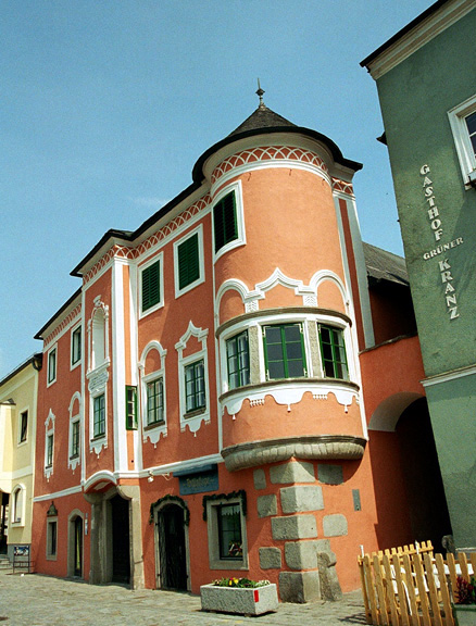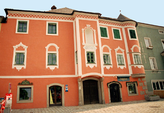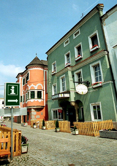 Seyer Haus in Mauthausen, Austria![]() The Seyer-Haus is one of several historic Bürgerhäuser (citizens's houses) on Haindlkai, the quay which faces the left bank of the Danube river in Mauthausen. ![]() ![]() ![]() This historic building in Mautahusen was a Chinese restaurant and hotel in 2003. The sign with the small letter i points to the tourist information office. ![]() ![]() ![]() Note the small window on the far left; behind the bars is a small religious statue. Many of the buildings in the town of Mauthausen, Austria feature the beautiful granite from the nearby quarry. Gasthof zur TraubeSt. Nicholas ChurchRoman ChapelGranite SculpturesPragstein CastleShip Master's HouseMarket PlaceHistoric HouseHaindlkaiDentist's houseHome |