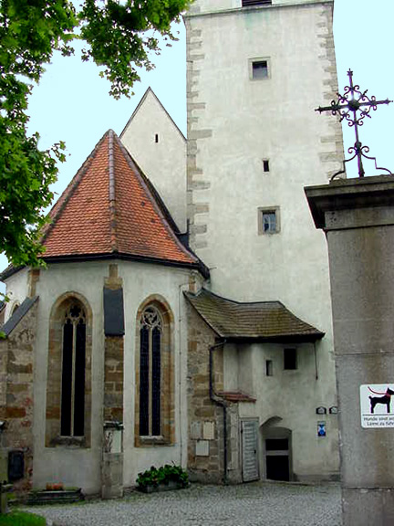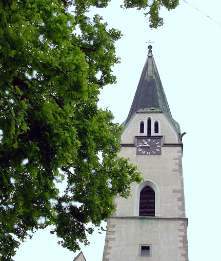 Base of Pfarrkirche St. Nikolaus Church steeple