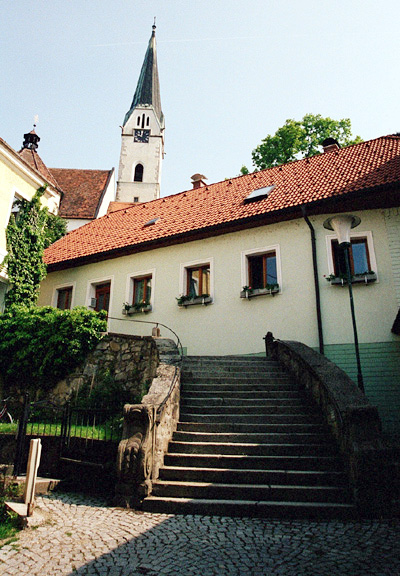Steps leading up to Pfarrkirche St. Nikolaus in Mauthausen, Austria