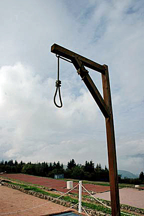 were hanged in front of all the prisoners: slow hanging by strangulation,