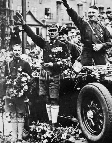 parade of Sturmabteilung (SA) troops from the back seat of a