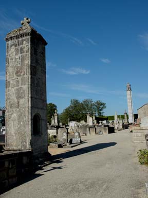 The photo above shows the Oradour-sur-Glane cemetery; in the foreground is an ancient Lantern for the Dead which dates back to the 12th century. The Lantern is the tall stone column on the left in the photo. In the background of the photo, on the right, is the Ossuary which contains the ashes of the victims of the massacre in Oradur-sur-Glane on 10 June 1944. On the side of the Lantern you can see an opening which looks like a place for burning something.