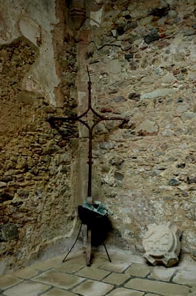 a corner of the church, just inside the front door.