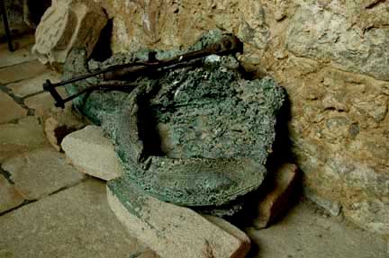 below shows a close-up of the melted bells. The iron bar that