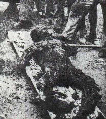 Oradour-sur-Glane. The photo below shows the burned corpse of