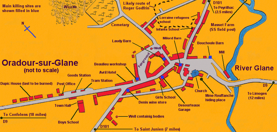 Center of Memory at Oradour-sur-Glane. It shows the six killing