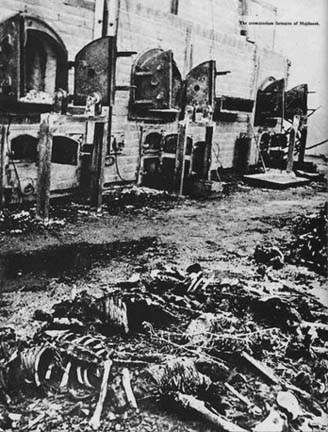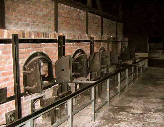 Crematorium at Majdanek![]() The photograph above shows the ovens in the Majdanek crematorium, on the side away from the entrance door, with the metal stretchers which were used to shove the bodies inside. The original wooden crematorium building at Majdanek was burned by the Nazis on July 22, 1944, just before they abandoned the camp, but the ovens remained intact. The reconstructed crematorium, which is open to tourists, is located at the top of a long slope, behind the spot where the barracks in Field V once stood. This is a reconstruction of the second crematorium that was built in the camp, which was not in operation until the autumn of 1943, according to the Museum guidebook. When the camp first opened, the bodies were buried in mass graves, but from June 1942 on, there were burned in the first crematorium, or on pyres made from the chassis of old lorries (trucks), according to the guidebook. The first crematorium is no longer in existence, and I never learned the exact location of it. It had two ovens which were brought to Majdanek from the Sachsenhausen camp in Germany. The new crematorium was outfitted with five Kori ovens which were fueled with coke. As you first walk into the crematorium, you see the row of five ovens. They are placed so close to the entrance door that you realize that there would not have been enough room for workers to slide the bodies inside. Then you walk around to the other side and see that the bodies were put into the ovens from the back side and the ashes taken out on the front side, a few feet from the entrance door. You can look all the way through the ovens and see that the interior of each oven is long enough to accommodate two bodies, placed end to end. On the front side, you can see ashes still remaining in the ovens. The movie shown at the Visitor's Center showed bones still in the ovens when the camp was liberated, although they have since been removed. ![]() According to Martin Gilbert in his book "Holocaust Journey," there is a gas chamber in this crematorium building which, like the building, is a reconstruction. Since it is a reconstruction, this gas chamber room does not show the blue staining that is present in the other gas chambers at Majdanek. The gas chamber room in the crematorium is very small; it has a hole in the ceiling for pouring in the poison gas crystals, and there is a floor drain directly below the hole. The door to this gas chamber is missing, and may have been taken to another museum for display. A casting of a Majdanek gas chamber door is on display at the United States Holocaust Museum in Washington, D.C. Right next to the room which has the 5 ovens, there is an alcove, or room open on one side, which has a large concrete bathtub. According to the guide, this tub was used by the SS man in charge of the ovens. In the shower room adjacent to the other gas chambers at Majdanek, there are two similar concrete bathtubs where the prisoners were dipped into disinfectant before taking a shower. The reconstructed gas chamber in the crematorium resembles a shower room. ![]() The black and white photo above shows the ruined crematorium as it looked when Russian soldiers arrived at the camp on July 23, 1944. The wooden crematorium building had been set on fire by the Nazis in order to burn the bodies of Polish political prisoners who had been brought from the Gestapo prison at the Castle in Lublin and executed the day before liberation. Their charred remains are shown in the foreground in the photo. In the background are the brick ovens with iron doors which were not damaged in the fire. The main gas chamber building, which is located down the slope at the other end of the camp, was not burned, leaving behind ample evidence of the Nazi crimes. In another room of the crematorium building is the concrete dissection table, on which the bodies were examined for valuables hidden in body cavities, according to the tour guide. It was here also that the gold teeth were removed from the victims after they were gassed. After the camp was liberated, bones of the cremated victims were gathered and put on display in a glass case, according to accounts written by visitors to Majdanek. I didn't see any glass case, but there was a large closed casket on display in the crematorium. The casket was covered with funeral wreaths, bouquets of flowers and candles left by visitors. The tour guide pointed out a new memorial plaque, placed at the crematorium in 1998, which had upgraded the percentage of Jewish victims in the Majdanek camp to 48%. The former number was 41%, which is mentioned in the guidebook. During the Communist regime in Poland, the suffering of the Jews was downgraded and the martyrdom of the Poles was emphasized. Now that is slowing changing to reflect the greater suffering by the Jews. Of the remaining victims, 31% were Polish political prisoners, 16% were POWs from the USSR and 5% were POWs or political prisoners from 26 other countries, according to the Museum booklet. Although most of the prisoners were either Jewish or Christian, there were also a few political prisoners in the camp who were Muslims or Buddhists, according to the Museum booklet. Outside the crematorium building, there was a real rose garden or "Rosenfeld" with miniature roses planted in two beds on either side of the path when I visited in October 1998; one of the flower beds had a clashing border of orange marigolds. LiberationHistoryTourGas ChamberBack to Majdanek indexHome |