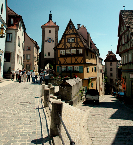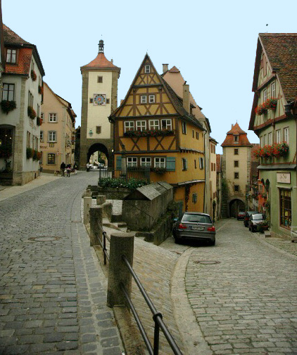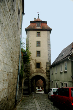 ![]() The Plönlein (Little Square) is one of the most photographed spots in the world. It is located at the southern end of Schmiedgasse (Smithy Lane). Note the large wooden box to the left of the parked car in the center of the photo. This is where the fishermen kept their catch until market day. On the left in the photo above, you can see the Siebers Tower which dates back to 1385 and is part of the second fortifications that were built when the city was expanded. On the right is the road to the Tauber valley through the Kobolzeller Gate which was built around 1360. If you walk down the street on the right and pass through the Kobolzeller Gate, you will see the steep road down to the Tauber Valley and the famous Double Bridge. ![]() ![]() ![]() Siebers TowerPreviousHome