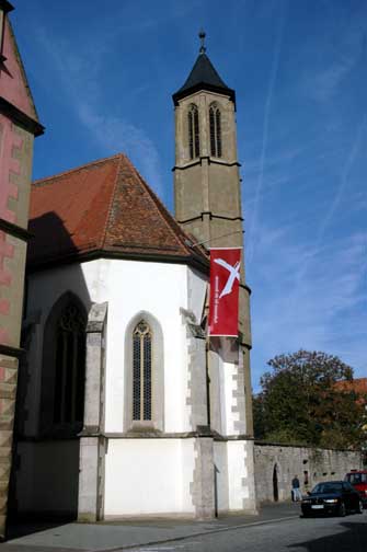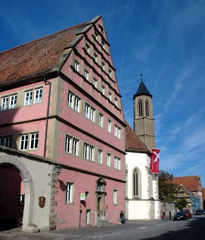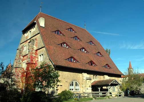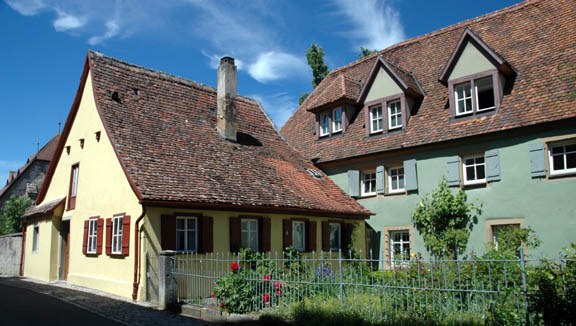 ![]() ![]() ![]() To get to the Rossmühle or Nag's Mill, shown in the photo below, make a right turn at the little cottage on Spitalgasse, shown in the photo above. The Rossmühle was built in 1516. The mill stone inside was turned by 16 nags or horses. There were mills that used water to turn the grindstone in the Tauber valley, but the residents of Rothenburg needed a mill inside the city wall so that they would have flour for bread when the city was under siege. ![]() If you follow the road that goes past the mill and turn to your left at the end of the road, you will first come to the Kalkturm and then to the Stöberleinsturm. From an open window on the ground floor of the Kalkturm, you can get a good view of Rothenburg. On the left, you can see the two spires of St. Jacob's Church; in the center is the white tower of the old city hall, and on the right is the tower above the Röder Arch. ![]() ![]() SpitaltorPreviousHome