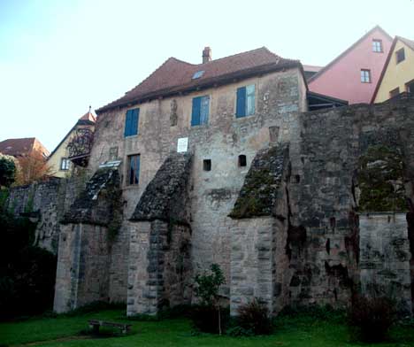 ![]() ![]() ![]() The photos above show the Strafturm (Punishment Tower) which is at the northwest corner of the city of Rothenburg ob der Tauber, near the Klingentor. Among other things, the Punishment Tower was used to imprison any young man who refused to marry the mother of his illegitimate child, until he changed his mind. After photographing the Strafturm, I walked south along the path which leads from the tower to the Burgtor, a route with a wonderful view of the valley. On the path to the Burgtor is the house where Dr. Karlstadt escaped from a window at the close of the Peasants War in 1525, when a number of the rebels were beheaded on the Market Square in Rothenburg ob der Tauber. ![]() The former Dominican Priory, which is now the Imperial City Musuem, is located on the west side of the city, just south of the Strafturm. Dominican NunneryPreviousHome