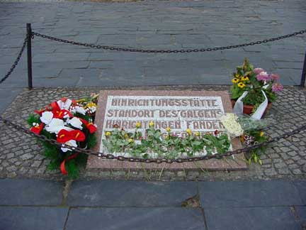 Tour of Sachsenhausen Memorial Site![]() According to the United States Holocaust Memorial Museum, there were approximately 140,000 registered prisoners in the Sachsenhausen Concentration Camp, and at least 30,000 of them died there. These figures do not include the Russian POWs, who were Communist Commissars. The Commissars were brought to Sachsenhausen to be executed at the firing range, per Adolf Hitler's written order, made just before the invasion of the Soviet Union on July 22, 1941. The photograph above shows a memorial stone inside the former camp. To your left, after you come through the gate house, you will see two long infirmary barracks which housed the camp hospital and the pathology department. They are shown in the photograph below. The brown stones in the foreground, which look like coffins, are markers which designate the sites of the former barrack buildings. ![]() On the west side of the camp, to your left after you enter through the gate house, is a wall which separates the industrial area, called the Industry Yard, from the prison enclosure, as shown in the photograph below. When the Memorial Site was designed, a section of this wall was moved so that visitors could have access to the location of the gas chamber and the crematorium, which was outside the prison enclosure. The first photograph below shows the wall and the second photo shows the ruins of the crematorium building with the floor of the gas chamber in the foreground and the execution pit in the background. ![]() ![]() Continue TourPathology DepartmentGas ChamberTable of ContentsHome |